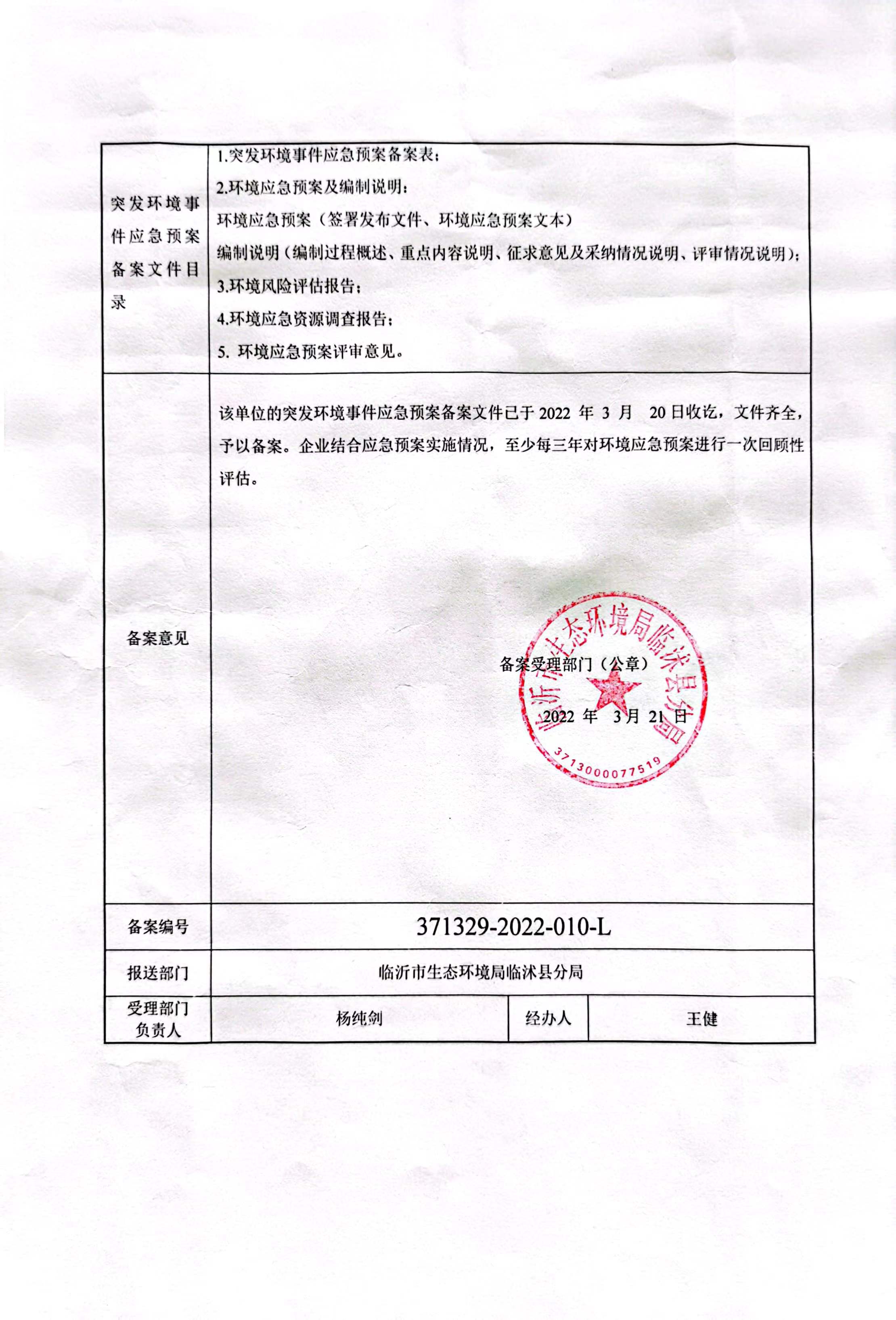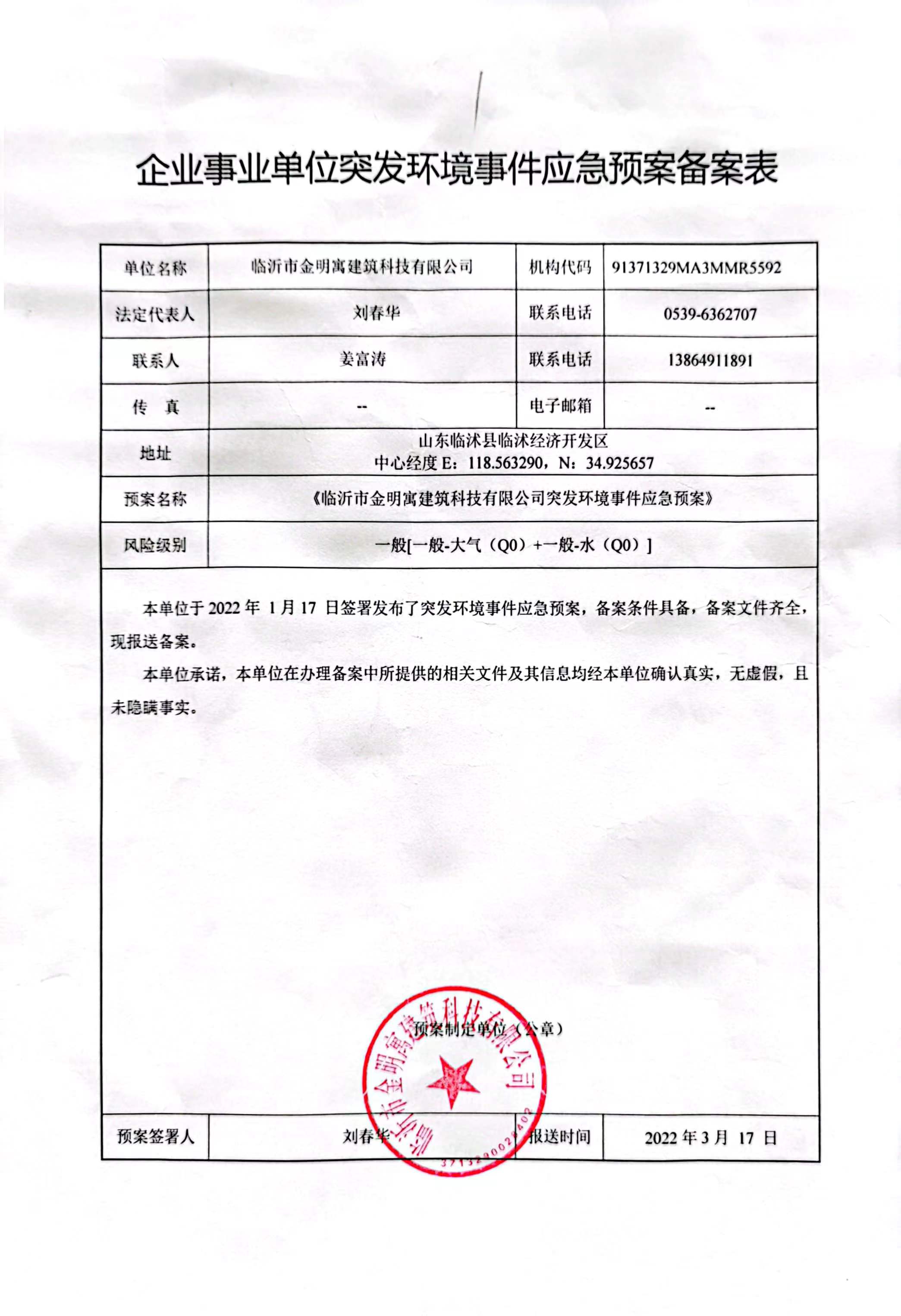 突發(fā)環(huán)境事件應急備案表公示